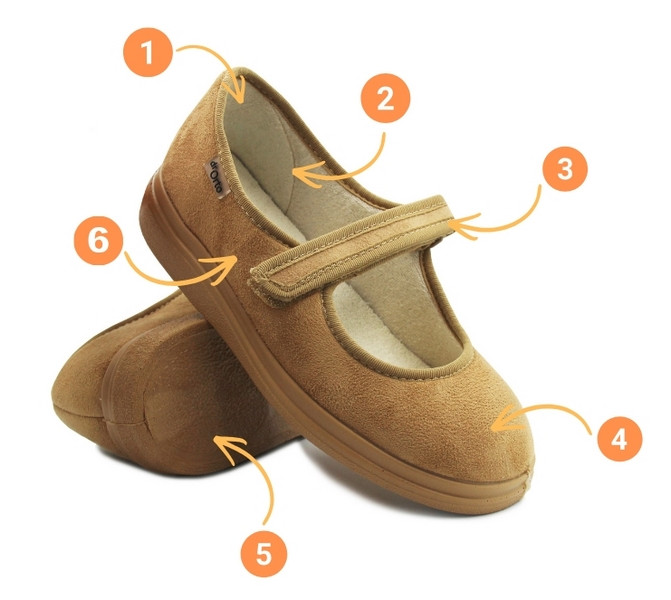 Model Dr Orto 462 posiada tęgość J, czyli zwiększoną szerokość wnętrza buta. Tego typu konstrukcja zapewnia: