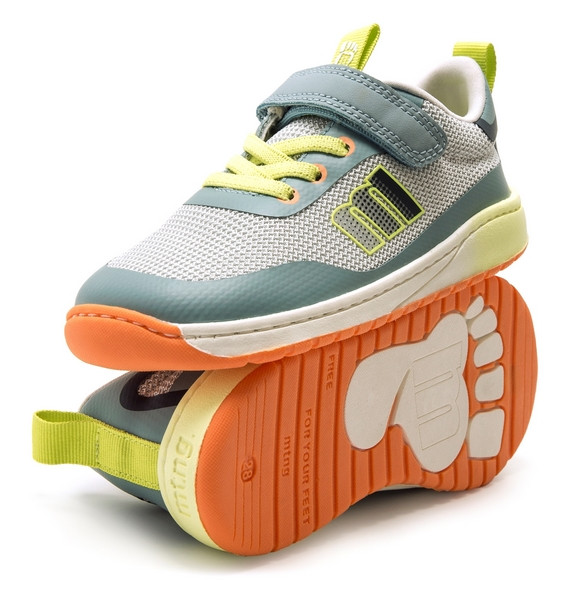 Model MTNG Free 49045-C59433 to nowoczesne buty barefoot stworzone z myślą o aktywnych dzieciach. Zaprojektowane w sportowym stylu, w kolorystyce szarości z neonowymi akcentami zieleni i pomarańczu, łączą wygodę, funkcjonalność i modny wygląd. Dzięki lekkiej konstrukcji oraz elastycznej podeszwie buty zapewniają naturalny ruch stopy, a szeroki przód pozwala palcom swobodnie pracować podczas chodzenia i biegania.