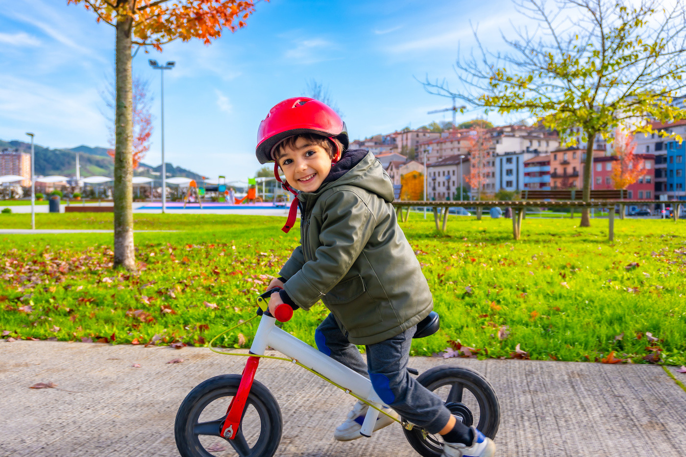 Na rowerku biegowym i hulajnodze dziecko często porusza się po chodnikach, asfaltowych alejkach, ale też po kostce brukowej czy ubitych ścieżkach.