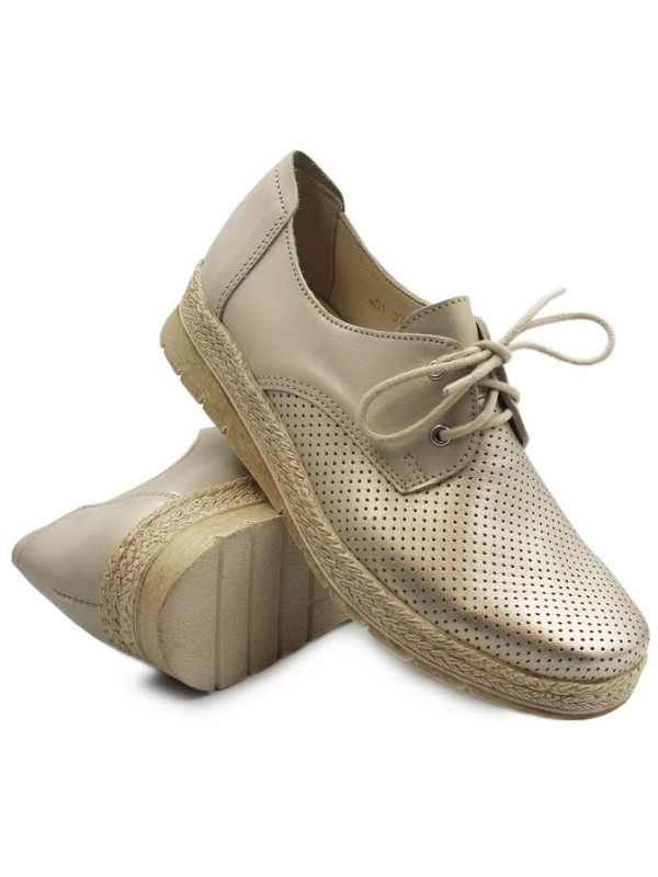 ➡️ Cholewka w złotym kolorze wykonana z miękkiej, wysokiej jakości skóry naturalnej, która zapewnia odpowiednią cyrkulację powietrza, dzięki czemu stopy nie się nie pocą