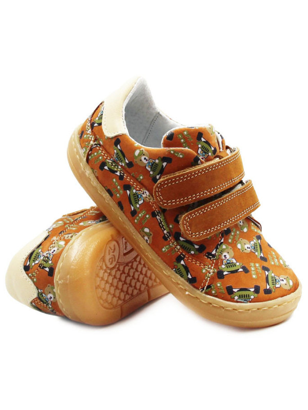 Buty wiosenne dla dziecka, zapinane za pomocą dwóch praktycznych rzepów. Wykonane ze skóry oraz miękiego weluru. Wkładka jest wyjmowana i dwuczęściowa, dzięki czemu amortyzuje wstrząsy od podłoża oraz poprawia komfort podczas chodzenia. Czubki półbutów są szersze, tak by palce mogły swobodnie się poruszać.