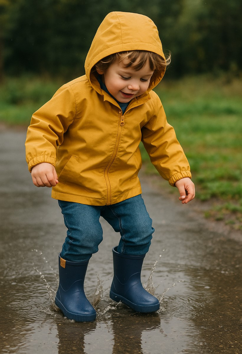 Na deszcz najlepiej sprawdzają się kalosze lub buty z membraną. Kalosze są dobre na krótkie spacery i zabawę w kałużach, ale nie nadają się do całodziennego noszenia, bo stopa się w nich poci.