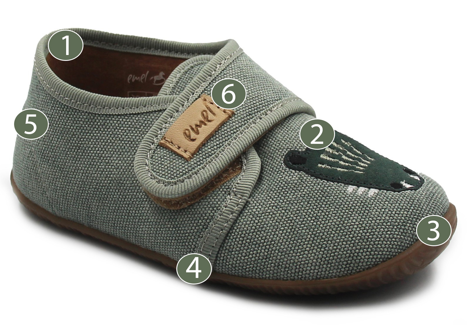 6. Zapięcie na rzep, umożliwia dopasowanie kapci do  stopy dziecka.