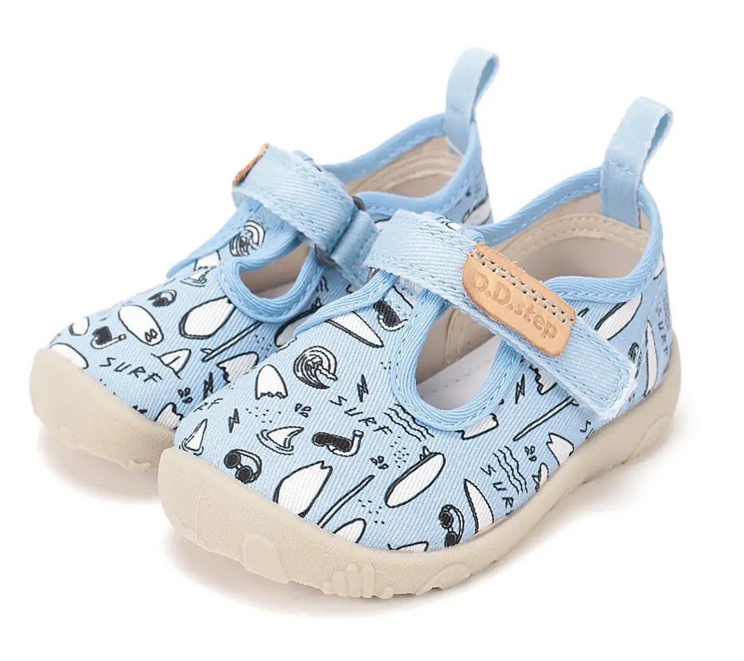 Dziecięce buty tekstylne w kolorystyce niebieskiej. To obuwie zarówno na dwór jak i jako obuwie zmienne do szkoły czy przedszkola. Regulowane za pomocą dwóch rzepów, które są szybkie, łatwe oraz praktyczne w użyciu. Wkładka delikatnie podpiera łuk stopy. Posiadają podeszwę Barfeoot, która charakteryzuje się wysoką elastycznością.