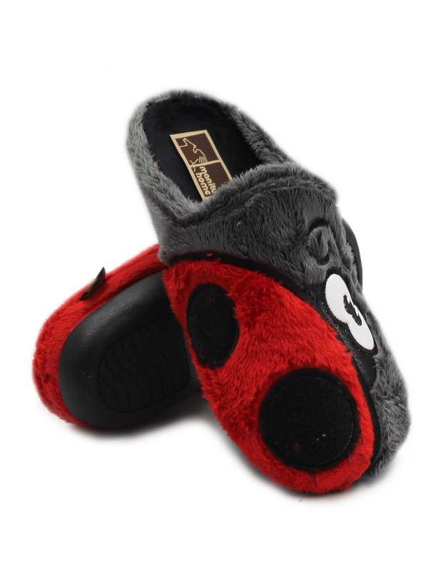 ✅ Kapcie z uroczym motywem biedronki w kolorach czerwony i czarny, zostały wykonane z miękkiego i ciepłego pluszowego materiału