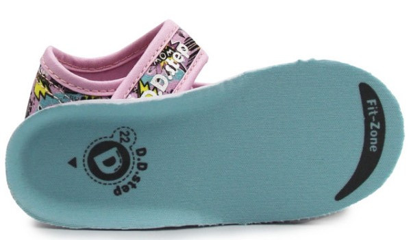 Wkładka Fit Zone w butach marki DD STEP to element, który ma na celu zapewnienie komfortu i wsparcia dla stóp dziecka podczas chodzenia.
