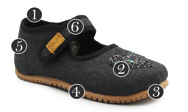 6. Zapięcie na rzep, umożliwia dopasowanie kapci do  stopy dziecka.
