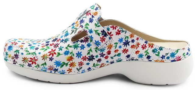 Dzięki żywemu kwiatowemu wzorowi, klapki Noruega Flowers PE94F4 dodają kobiecości, jednocześnie zachowując profesjonalny wygląd. jednocześnie zachowując profesjonalny wygląd. Klapki dla pielęgniarek, opiekunów i innych pracowników służby, którzy cenią sobie zarówno funkcjonalność, jak i modę. Sprawdzą się jako obuwie do pracy, jednak należy by nie miały styczności z warunkami szkodliwymi/ ciężkimi, jak np. wysokie temperatury, pyłki.