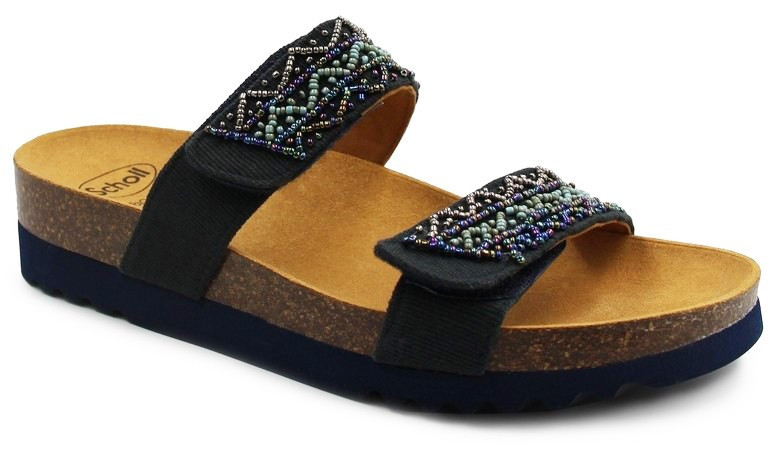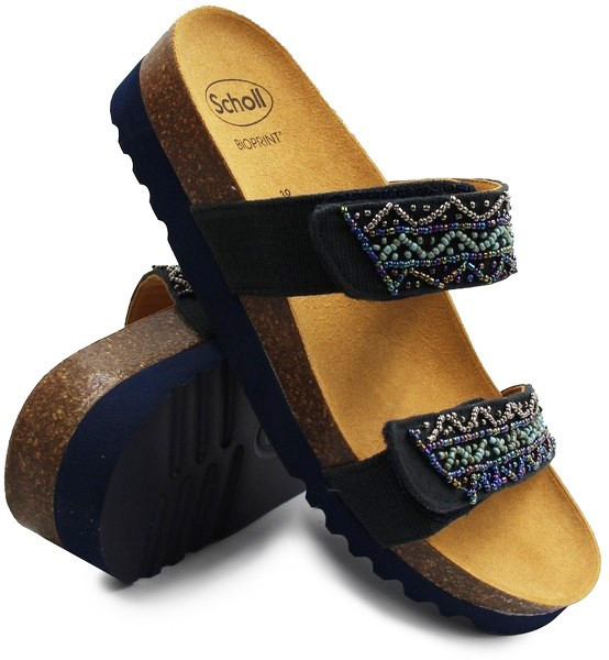Stylowe i wygodne sandały Zafirah to wybór na co dzień, wakacje, letnie wyjścia oraz jako obuwie do pracy. Wykonane z trwałego płótna i ozdobione kolorowymi koralikami, łączą w sobie modny wygląd i funkcjonalność. Dzięki regulowanym paskom z zapięciem na rzep, klapki można dopasować do stopy. Są lekkie, elastyczne i wyposażone w technologię Scholl Bioprint®, która zapewnia optymalne wsparcie i wygodę. Specjalnie wyprofilowana wkładka z korka i gumy pomaga utrzymać stopę w prawidłowej pozycji oraz zapewnienie komfortu podczas chodzenia.