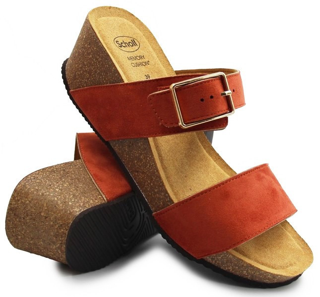 Duża, dekoracyjna klamra przyciąga wzrok, a technologia Scholl Memory Cushion gwarantuje wygodę noszenia przez cały dzień. Wkładka dopasowuje się do kształtu stopy, równomiernie rozkładając nacisk. Prosta cholewka delikatnie otula stopę, a koturn z korka nadaje butom kobiecy i stylowy wygląd. Wkładka Memory Cushion to dopasowanie do kształtu stopy jej główną zaletą jest zapamiętanie konturu stopy, działa ona w oparciu o technologię pianki z pamięcią kształtu.