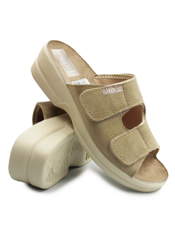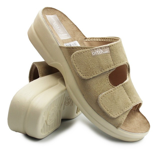 Klapki Dla Kobiet Dla Seniorki Beżowe Adanex 26184