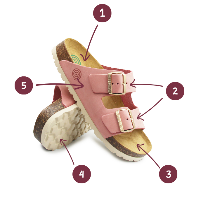 1. Wkładka wykonana ze skóry naturalnej, dzięki czemu skóra się nie poci a buty nadają się do całodziennego stania lub chodzenia np. w pracy czy na wakacjach.