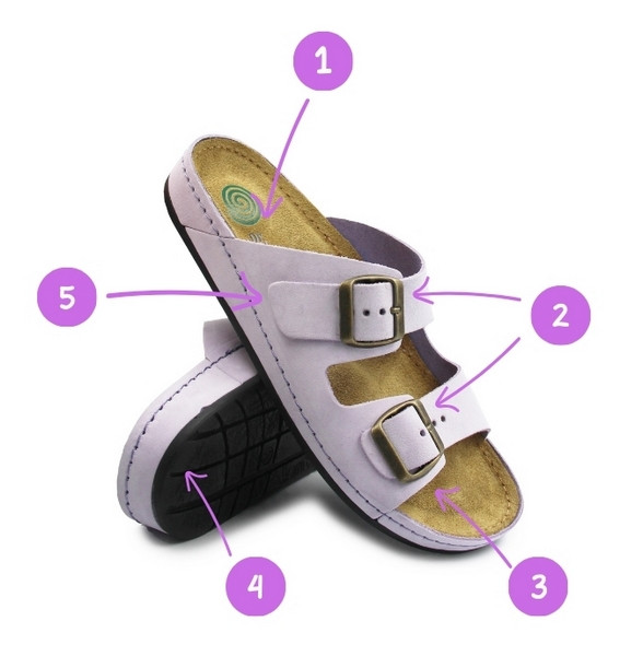 1. Wkładka wykonana ze skóry naturalnej, dzięki czemu skóra się nie poci a buty nadają się do całodziennego stania lub chodzenia np. w pracy czy na wakacjach.