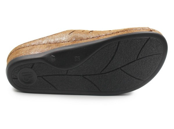 Dolna część klapka została wykonana z tworzywa, które zapewnia odpowiednią przyczepność do podłoża. Elastyczna, antypoślizgowa podeszwa ułatwia swobodne poruszanie się zarówno w domu, jak i na zewnątrz. Dzięki swojej konstrukcji pochłania wstrząsy i zwiększa komfort noszenia przez wiele godzin.