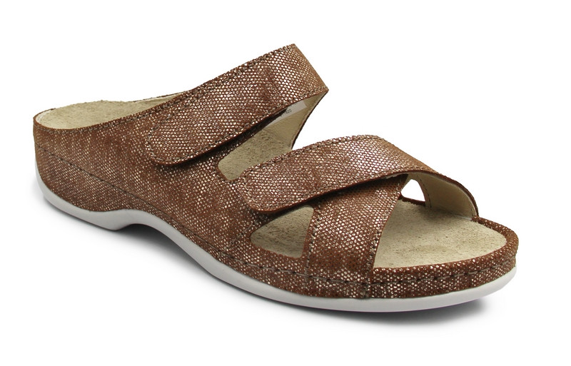 Dzięki dwóm regulowanym zapięciom na rzep - nad podbiciem oraz w przedniej części stopy - klapki Felia doskonale dopasowują się do indywidualnego kształtu stopy. To szczególnie ważne dla osób poszukujących klapek na szeroką stopę, butów o większej tęgości lub wygodnych laczków z regulacją.