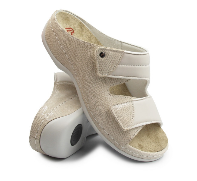 Dzięki dwóm regulowanym zapięciom na rzep - nad podbiciem oraz w przedniej części stopy - klapki Finja doskonale dopasowują się do indywidualnego kształtu stopy. To szczególnie ważne dla osób poszukujących klapek na szeroką stopę, butów o większej tęgości lub wygodnych laczków z regulacją.