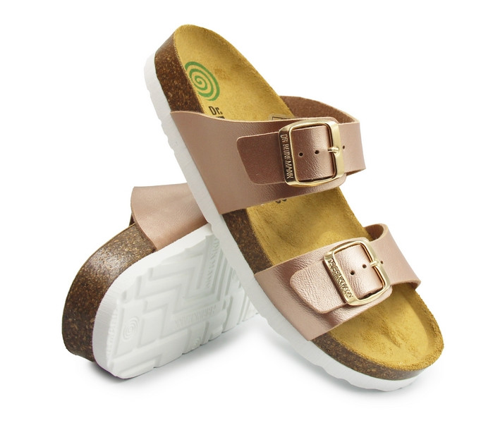Klapki damskie Dr. Brinkmann to model przeznaczony do codziennego użytkowania w sezonie wiosenno - letnim. Klasyczna konstrukcja z dwoma paskami oraz stonowana kolorystyka sprawiają, że obuwie pasuje zarówno do codziennych stylizacji, jak i bardziej eleganckich.