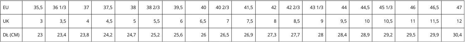 Komfort i dopasowanie - tęgość E–H