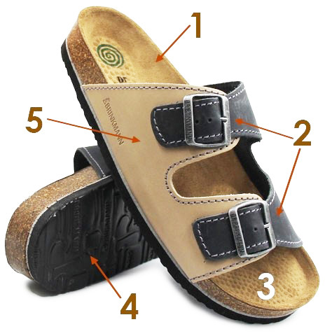 1. Wkładka wykonana ze skóry naturalnej, dzięki czemu skóra się nie poci a buty nadają się do całodziennego stania lub chodzenia np. w pracy czy na wakacjach.