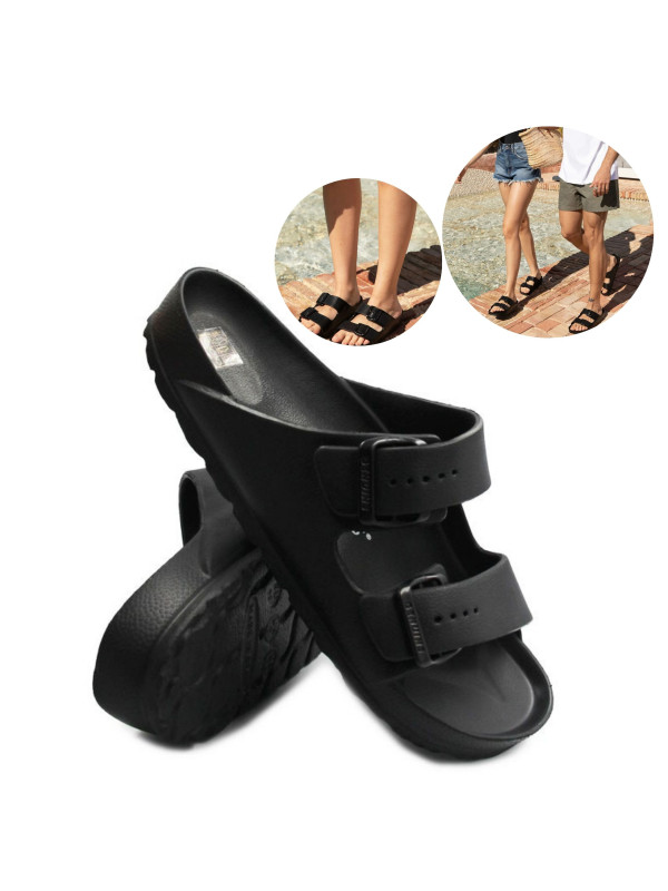 Klapki sprawdzą się na plażę, basen, do pracy oraz na co dzień. Posiadają właściwości wodoodporne. Wykonane są z materiału EVA, zapinane za pomocą dwóch klamr, które umożliwiają dokładniejsze dopasowanie do stopy. Wkładka dopasowuje się od anatomicznych kształtów stopy użytkownika.
