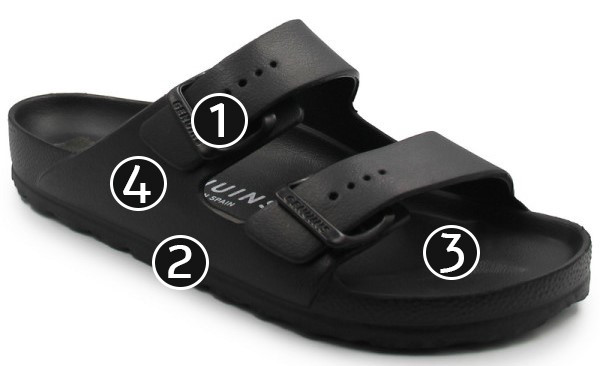 Klapki sprawdzą się na plażę, basen, do pracy oraz na co dzień. Posiadają właściwości wodoodporne. Wykonane są z materiału EVA, zapinane za pomocą dwóch klamr, które umożliwiają dokładniejsze dopasowanie do stopy. Wkładka dopasowuje się od anatomicznych kształtów stopy użytkownika.