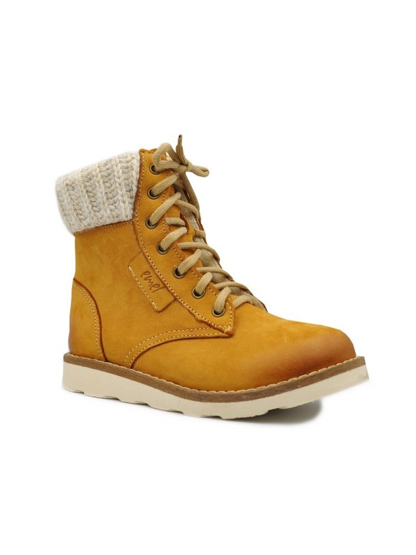 Wierzch butów Emel ev 2646 wykonany jest ze skóry naturalnej w kolorze musztardowym. Dodatkowo kozaczki są  ocieplane polarkiem