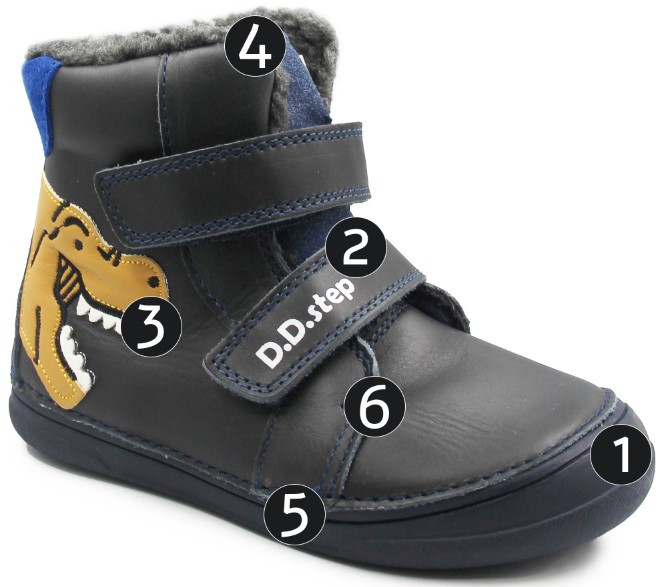 Chłopięce buciki na zimę ocieplone są mięciutkim, syntetycznym futerkiem. Posiadają dwa zapięcia za pomocą rzepów, dzięki czemu dziecko ma możliwość do samodzielnego zakładania oraz zdejmowania obuwia. Wykonane przy użyciu technologii 3D, która polega na ograniczeniu ilości kleju podczas produkcji.