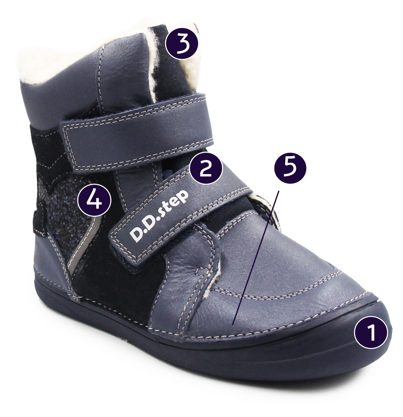Buty dziewczęce na zimę W078-42862AL to połączenie stylu, komfortu oraz ciepła. Stopy otula miękki materiał futerkowy wewnątrz obuwia, a dodatkowo ogrzewa i chroni przed chłodniejszymi temperaturami. Zapięcia na rzep są szybkie, łatwe oraz praktyczne w użytku. Elastyczna podeszwa stopie na naturalny ruch, nie ograniczając ruchomości podczas chodzenia, czy też zabaw. Szersze czubki pozwalają palcom swobodnie się poruszać. Buty przeznaczone są dla stóp normalnych oraz szerokich.