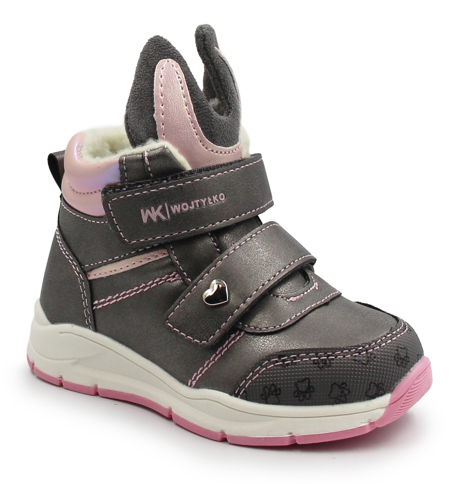 Zimowe Buty Dla Dziewczynek Na Rzep Ocieplane Wojtyłko 1Z26090 Szary