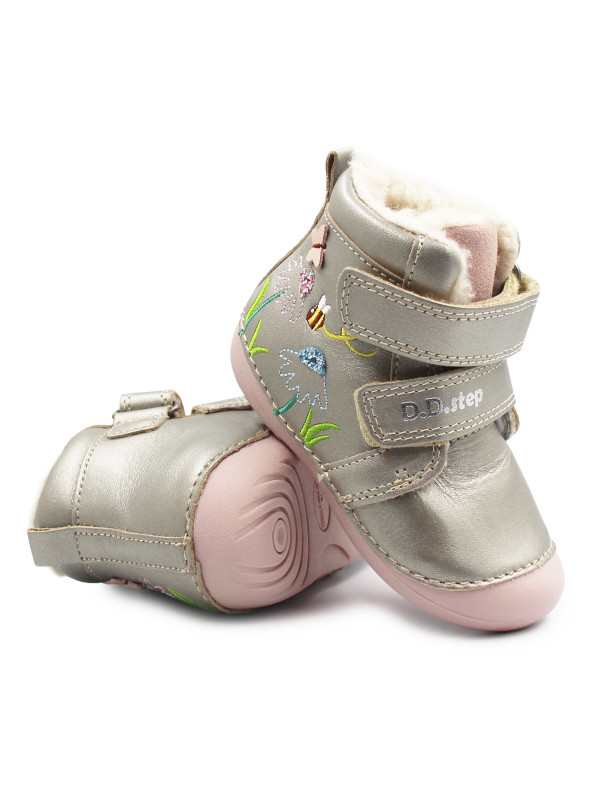 Buty Na Zimę Dla Dziewczynek w Kwiatuszki Motylki DD STEP W015-52997V Bronze