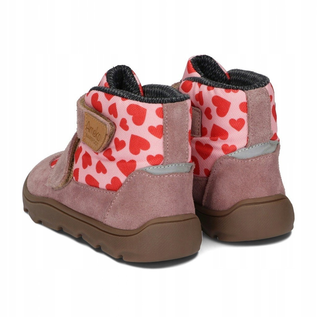 Różowe Buty Dla Dziewczynki Ocieplane za Kostkę Barefoot Ameko Elon Hearts