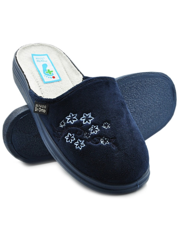 Kapcie Damskie Granatowe Miękkie Wygodne DR ORTO 132D012 W Kwiaty