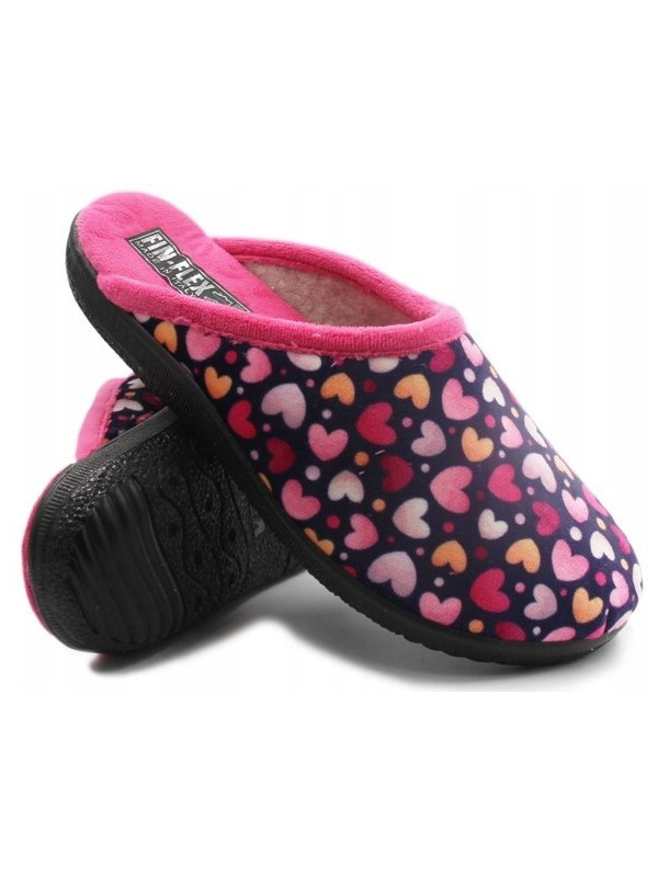 Miękkie papcie damskie domowe w serca Fin- Flex rp54 Fuxia