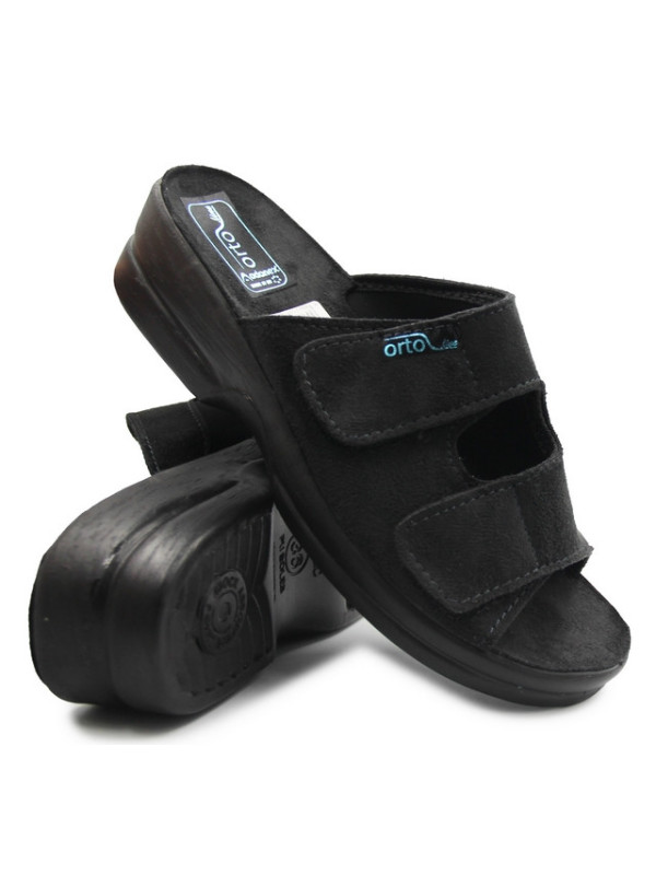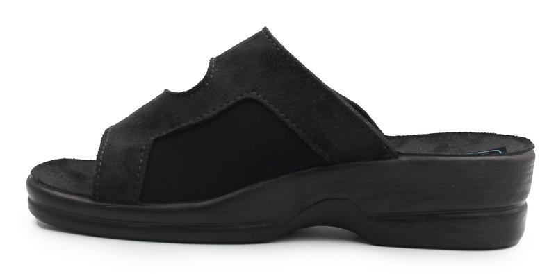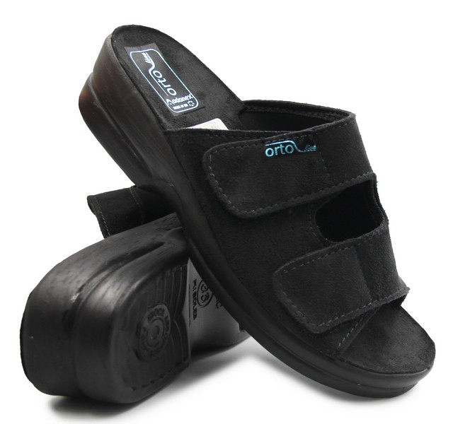 Damskie klapki, które sprawdzą się jako obuwie podczas lata oraz jako buty domowe. Element ze stretchu charakteryzuje się wysoką rozciągliwością, dzięki czemu buty dopasują się do szerokości stopy. Wyposażone w dwa zapięcia za pomocą rzepu, które umożliwiają dokładniejsze dopasowanie obuwia do stopy.