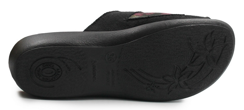 Damskie kapcie po domu wykonane z miękkich tkanin. Podeszwa wykonana z pu polyurethane jest bardzo lekka co daje wysoką swobodę noszenia kapci. Tęgość cholewek jest zwiększona.