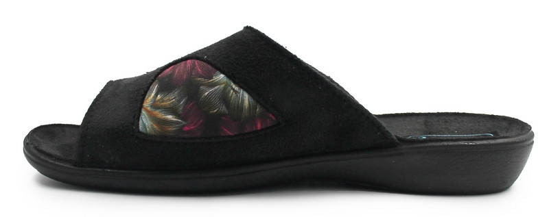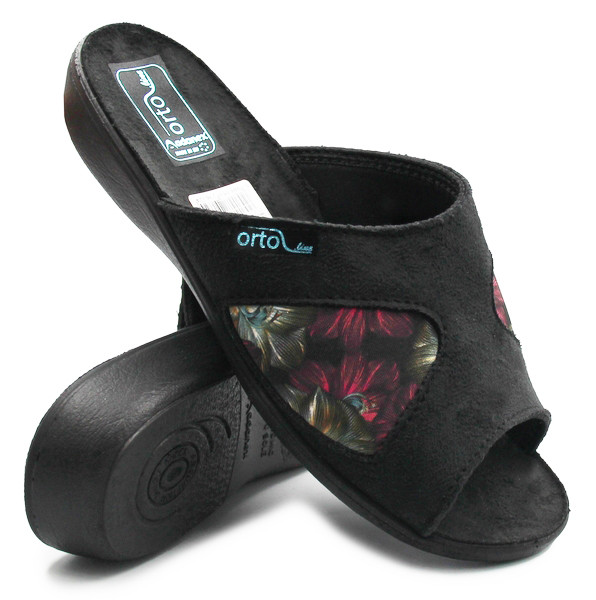 Damskie kapcie po domu wykonane z miękkich tkanin. Podeszwa wykonana z pu polyurethane jest bardzo lekka co daje wysoką swobodę noszenia kapci. Tęgość cholewek jest zwiększona.