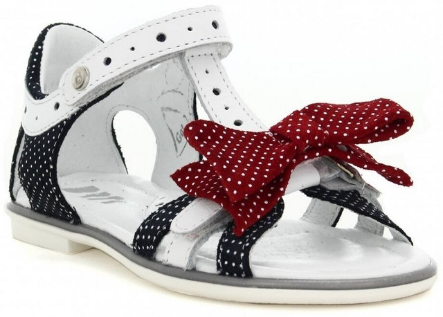 ⭐️ Dziewczęce sandały wykonane z połączenia skóry nubukowej w urocze groszki i białej skóry licowej