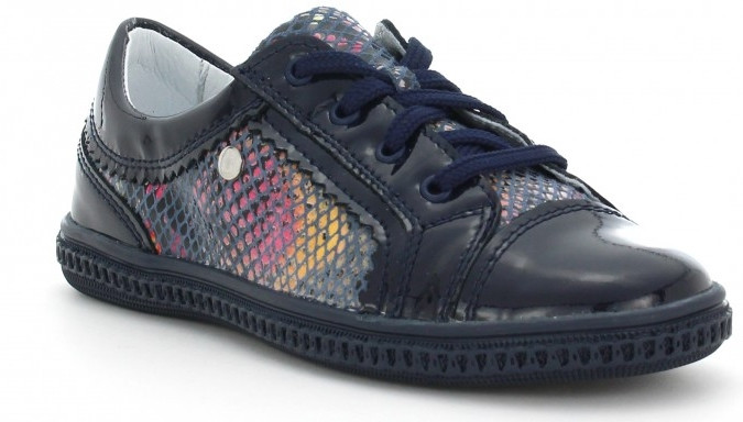 Dziewczęce, półbuty polskiej firmy Bartek w kolorze granatowym z dodatkiem wielokolorowego wzoru