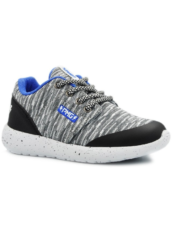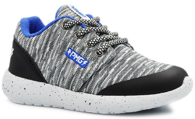 Świetny sportowy model w kolorze szarym w połączeniu z niebieskim i czarnym.