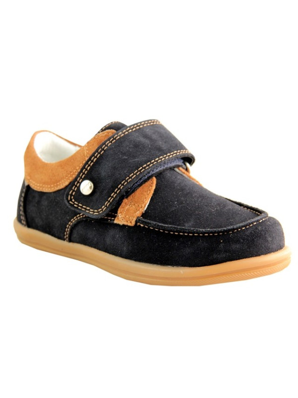 Chłopięce półbuty firmy Bartek w kolorze ciemnego granatu z brązem. Idealne zarówno na większe okazje jak i do szkoły.