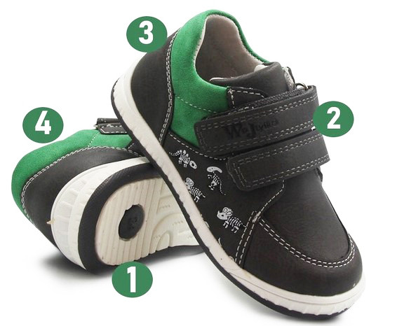 3. Usztywniony zapiętek pozwala utrzymać stopy dziecka we właściwym położeniu