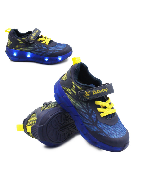 Buty na Wiosnę Dla Chłopca Sportowe Adidasy LED DD Step f061-391m Bermuda Blue