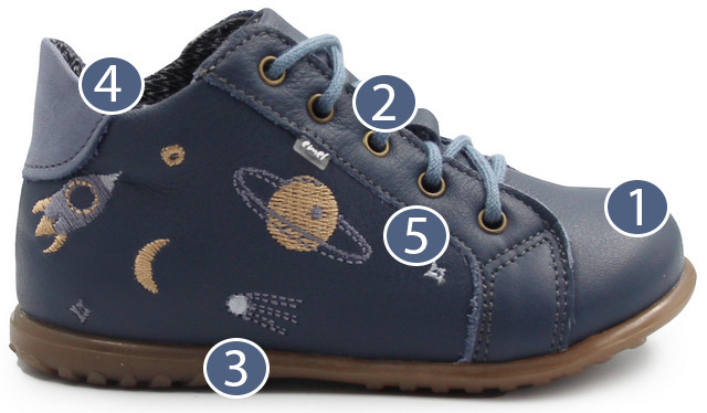 ✅ Usztywnienie tylnej części bucika sięga poniżej kostki, buty muszą pozwalać dziecku siadać na piętach