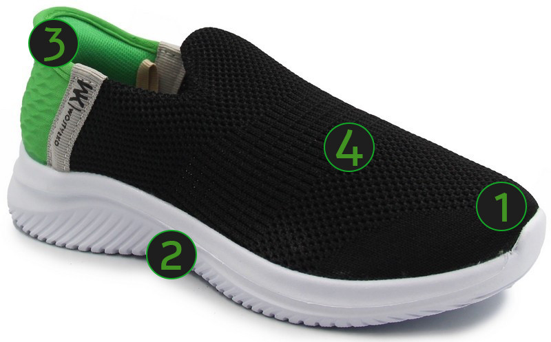 Sportowe półbuty wykonane z oddychających materiałów, które dopasowują się do szerokości stopy. Podeszwa jest bardzo lekka i odpowiada za amortyzację wstrząsów od podłoża, na jakie narażona jest stopa, szczególnie w okolicy pięty. Zapiętek zapobiega przesuwaniu się pięty na boki i stabilizuje stopę, pomaga w prawidłowym rozłożeniu ciężaru ciała.