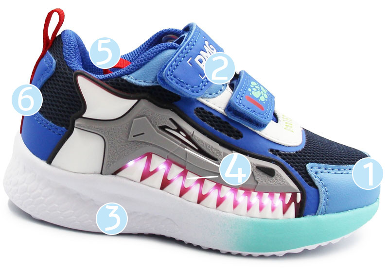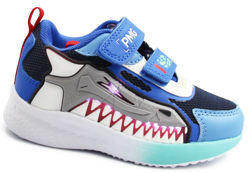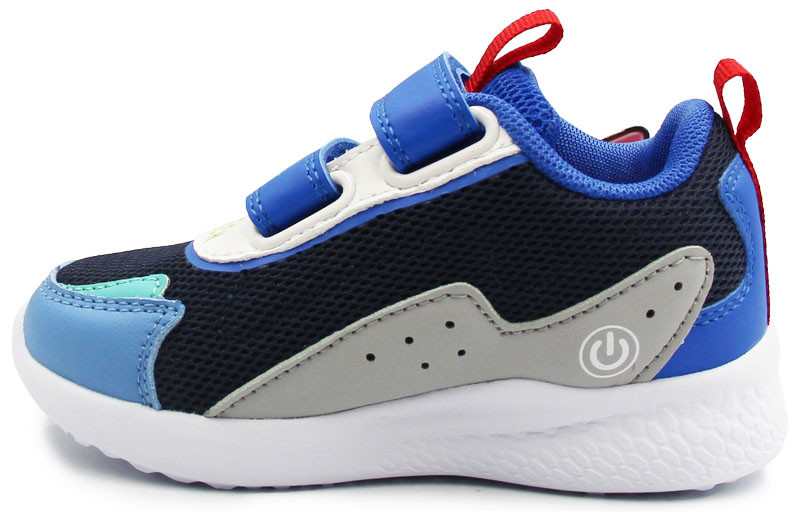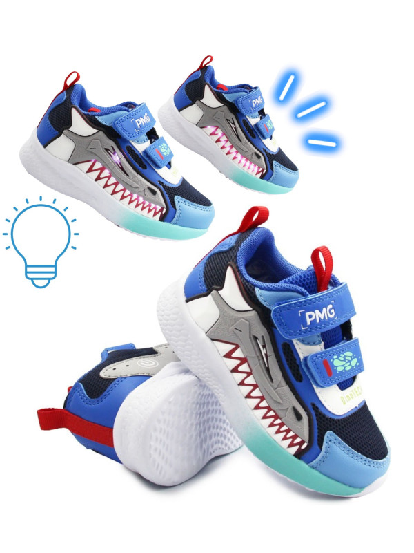 Te dziecięce sneakersy wyróżniają się ledowymi światełkami, które nadają im wyjątkowy charakter. Kolorowe elementy i precyzyjne wykonanie przyciągają wzrok. Buty są wygodne i lekkie,  do codziennego użytku i aktywności na zewnątrz. Wyjmowana wkładka skórzana, to odpowiednia wentylacja stopy. Miękki materiał wewnątrz obuwia sprzyja komfortowi podczas noszenia. Wygodne, szybkie oraz praktyczne zapięcia za pomocą dwóch rzepów.