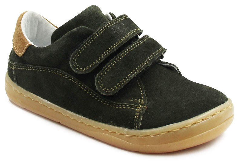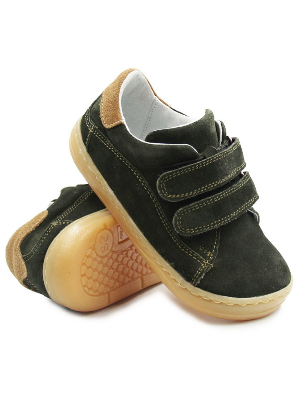 Buty wiosenne dla dziecka, zapinane za pomocą dwóch praktycznych rzepów. Wykonane ze skóry oraz miękkiego weluru. Wkładka jest wyjmowana i dwuczęściowa, dzięki czemu amortyzuje wstrząsy od podłoża oraz poprawia komfort podczas chodzenia. Czubki półbutów są szersze, tak by palce mogły swobodnie się poruszać.