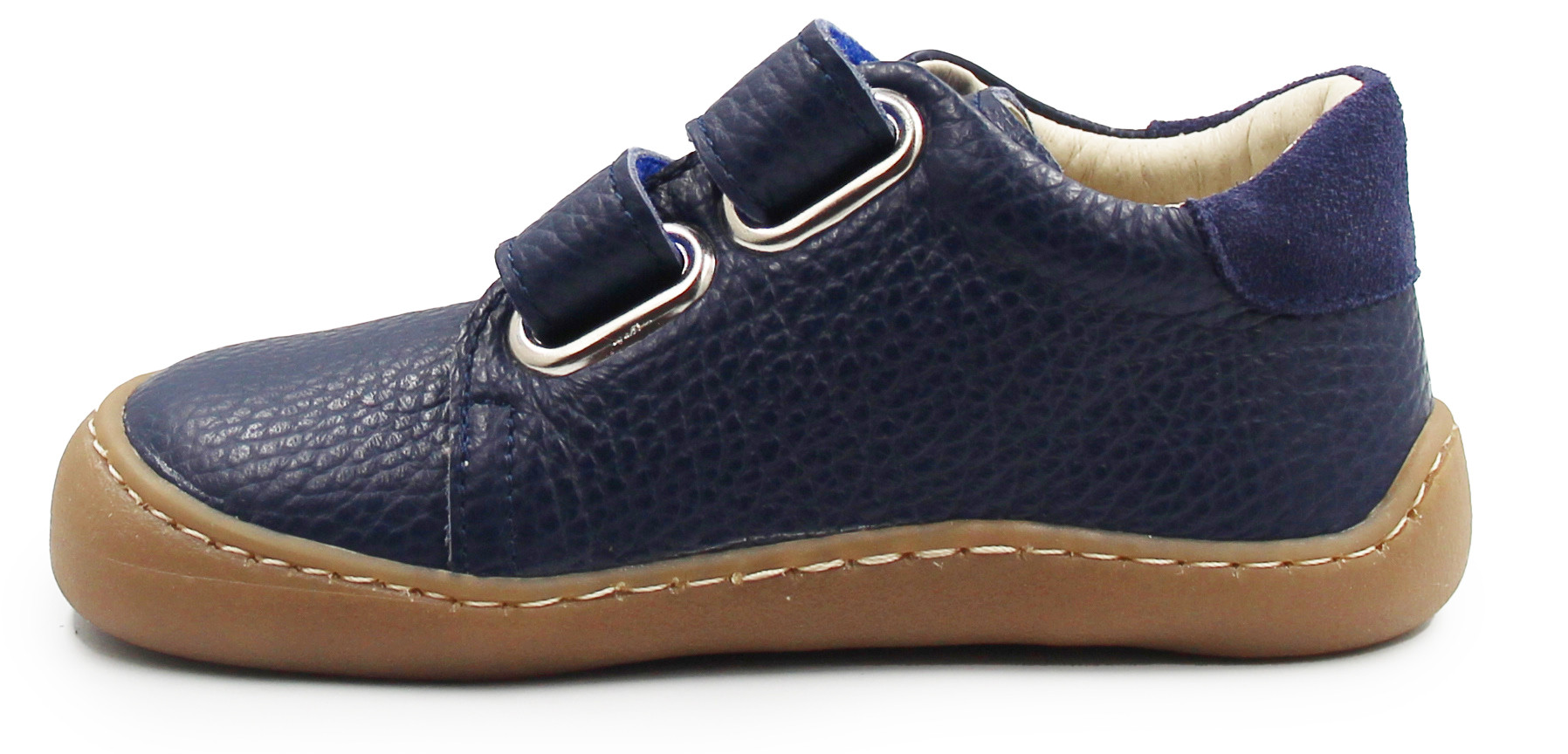 Chłopięce półbuty zapinane za pomocą dwóch rzepów. Wyposażone w ozdobny element po boku. Podeszwa Barefoot, jaka została zastosowana, zapewnia palcom swobodne poruszanie