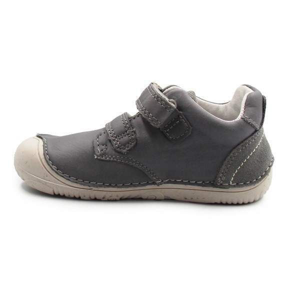 Wiosenne buty dla chłopca, wykonane z miękkiej skóry nubukowej. Wyposażone w podeszwę Barefoot, którą cechuje wysoka elastyczność oraz uczucie chodzenia "na boso", zapewnia stopie maksymalne czucie powierzchni. Wkładka o zerowym spadku, co oznacza że nie posiada różnicy między palcami, a piętą.