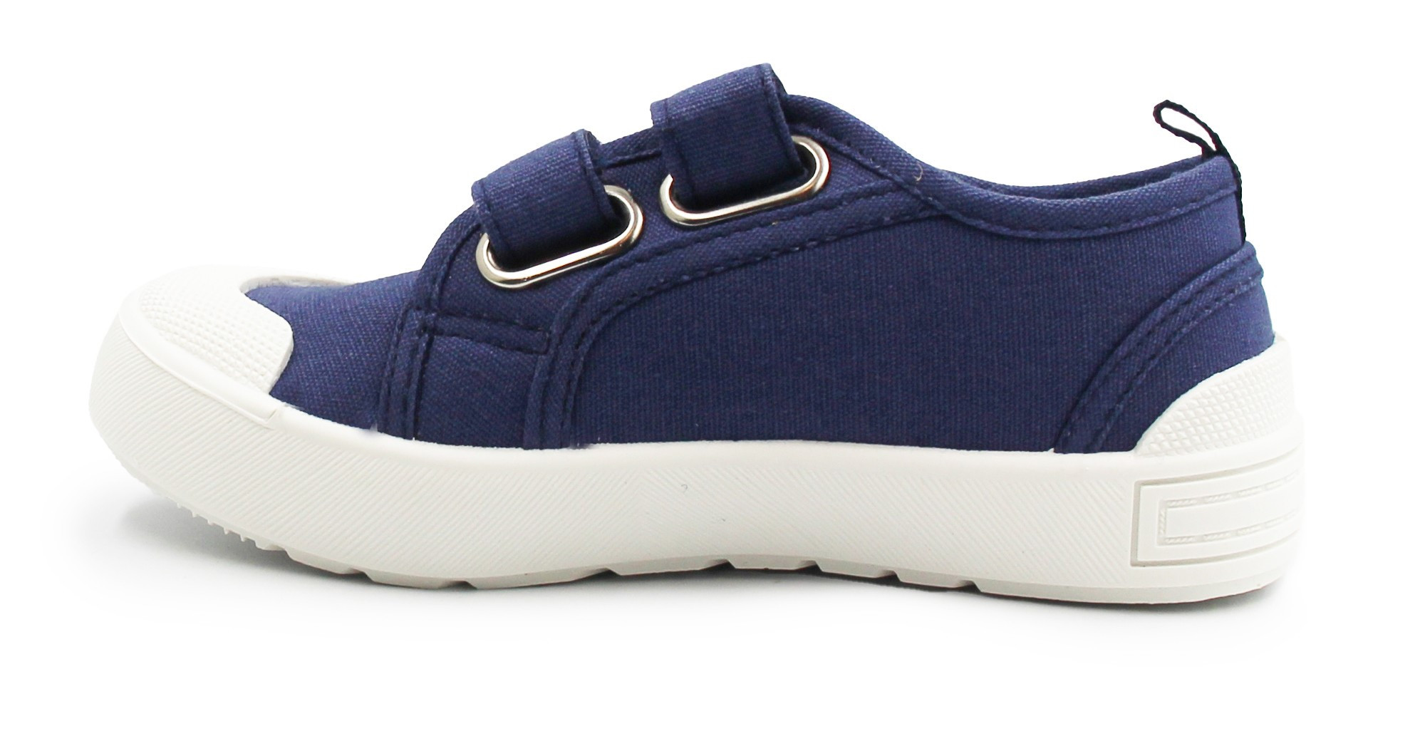 Dziecięce buty tekstylne w kolorystyce granatowej. To obuwie zarówno na dwór jak i jako obuwie zmienne do szkoły czy przedszkola. Regulowane za pomocą dwóch rzepów, które są szybkie, łatwe oraz praktyczne w użyciu. Wkładka delikatnie podpiera łuk stopy.