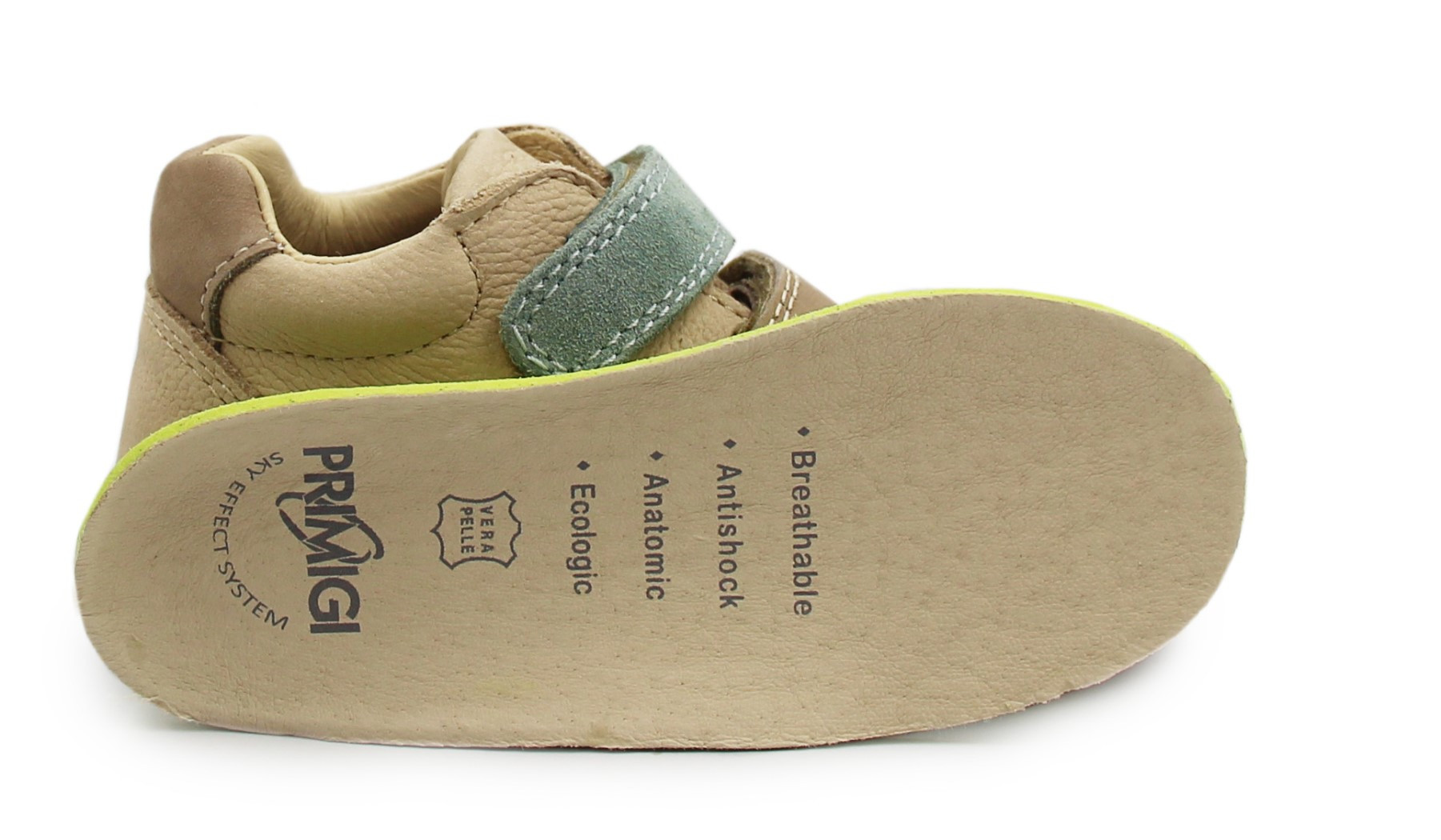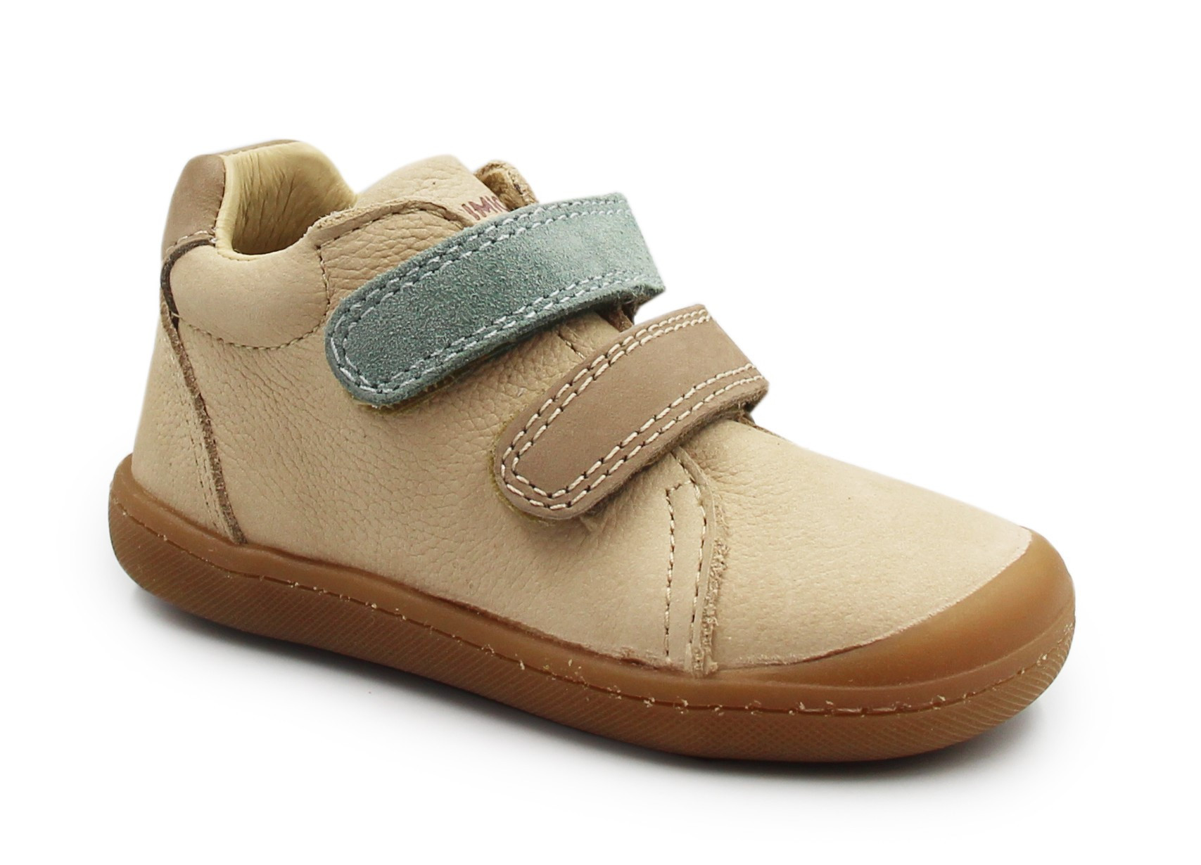 Skórzane buty dziecięce z elastyczną podeszwą, która zapewnia stopie naturalny ruch podczas poruszania. Zapinane za pomocą dwóch praktycznych rzepów. Skórzane wnętrze wypełnione przy kołnierzu miękką pianką.